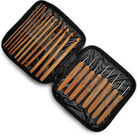 20 قطعة من إبر الكروشيه المصنوعة من الخيزران المحبوك مع علبة